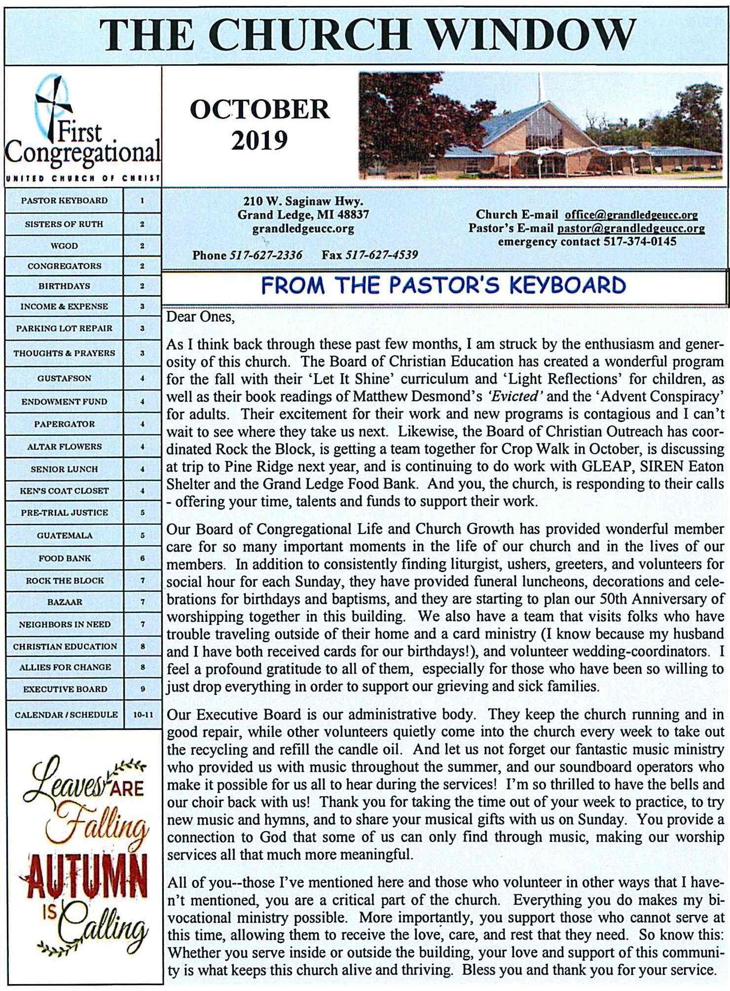 October Newsletter 2019
