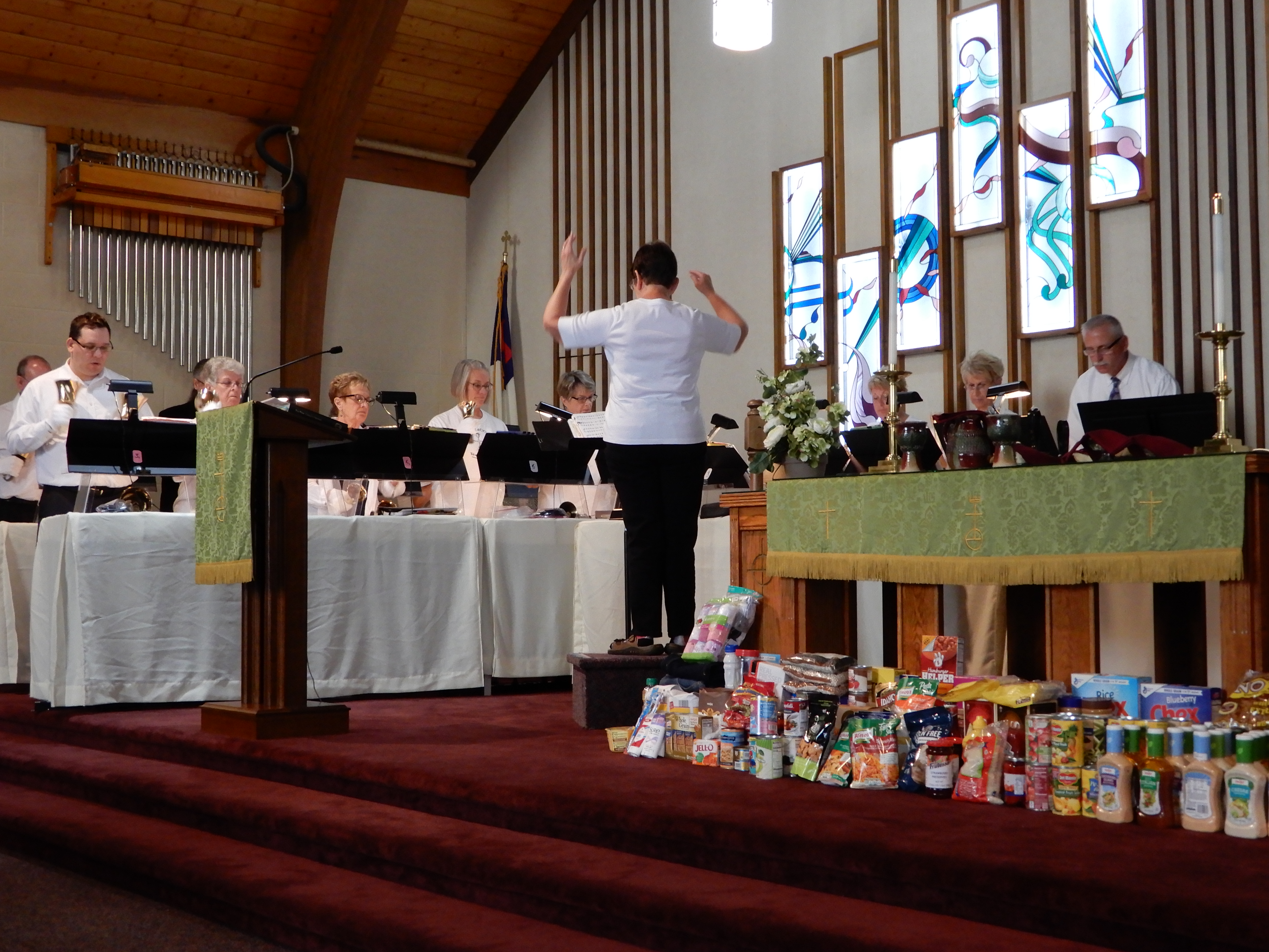 Each worship service begins and ends with the chiming of bells, and the second Sunday of the month is devoted to the Bell choir.